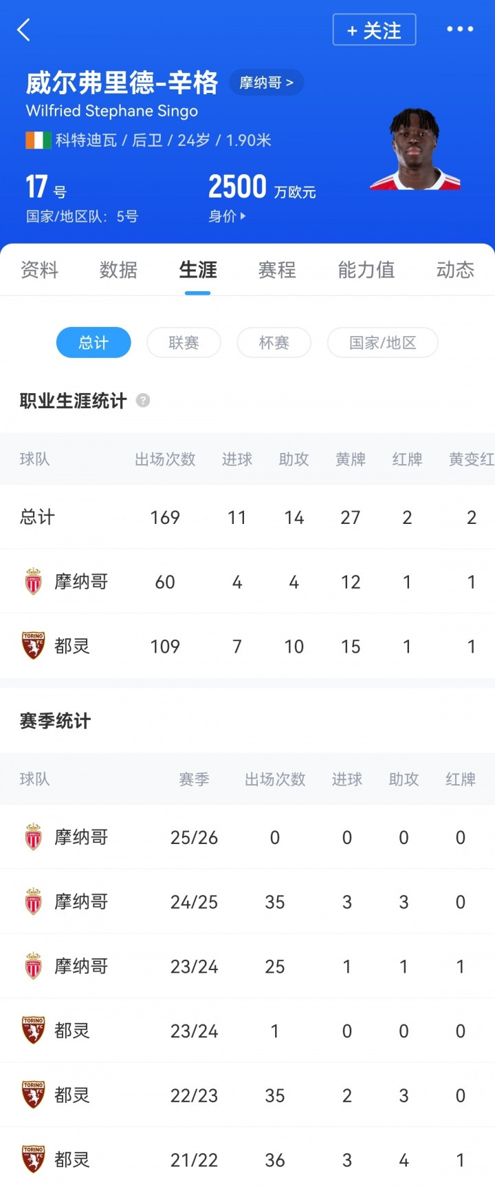 - 2025/09/08官方: 加拉塔萨雷3076万欧签下摩纳哥后卫